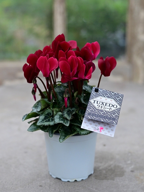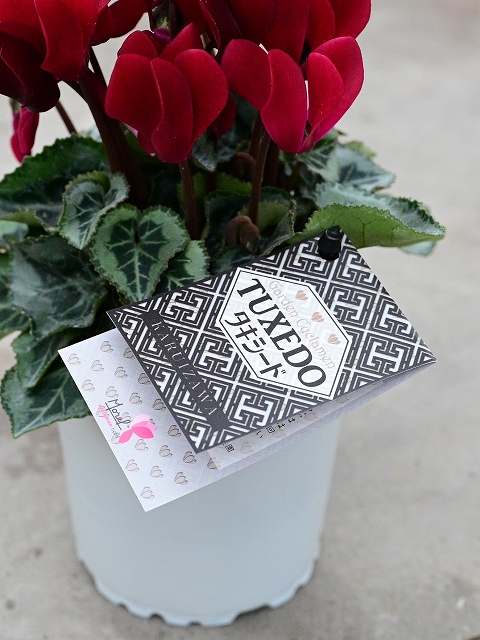 濃い黒赤色とシルバーリーフのコントラストが目を引く