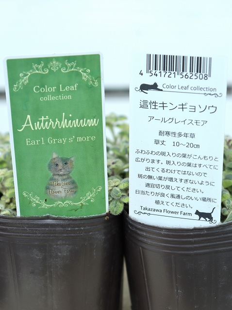 ふわふわの斑入りの葉が広がる這性キンギョソウ