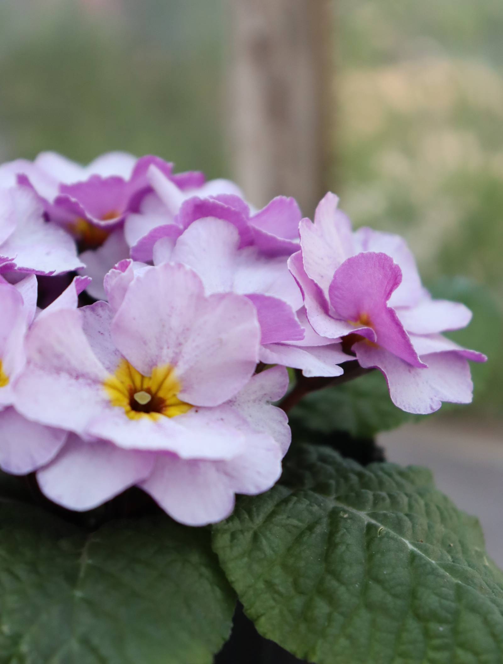 バイカラーのプリムラジュリアン 寄せ植えに適した春の花