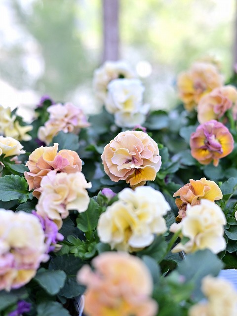 【花日和オリジナル】ビオラ 八重咲きアチュード 10.5cmポット ※写真のように大きく色幅があり、色味はご指定いただけません。